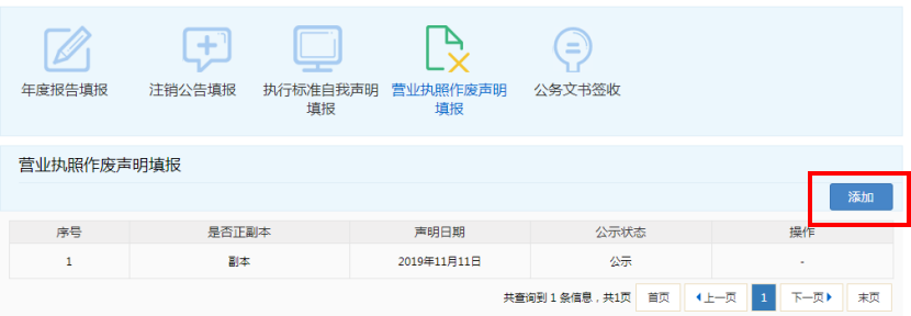 若企业显示“正在进行营业执照作废声明”,则说明已公示成功。